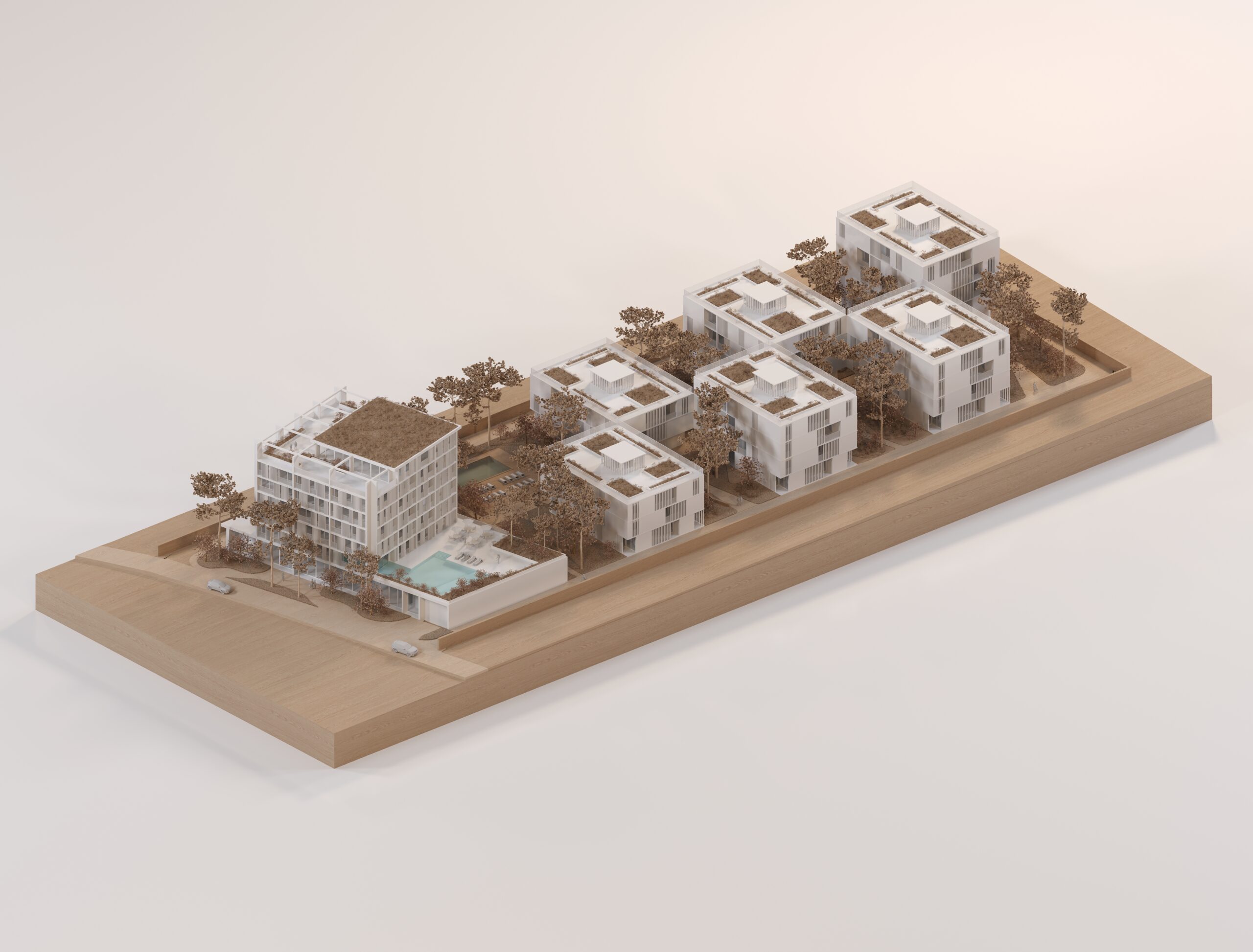 The Lalëz project envisions architecture deeply rooted in landscape, where pure volumes engage with nature and heritage. “Houses in the park” creates fluid spaces interweaving public and private realms, ensuring seamless indoor-outdoor continuity. Authentic materials and balanced proportions evoke memory and identity, while orientations toward sea, mountains, and greenery celebrate light and wind. A harmonious mix of residences and hospitality shapes a contemporary destination, fostering community and conviviality, where the landscape becomes the true protagonist.